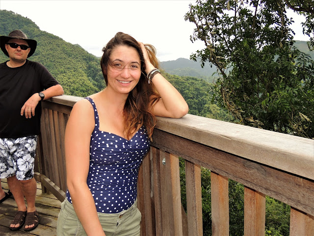 Up to breakfast for an overload of food first thing in the morning. It was a quick breakfast because we had to make it to the port in time to catch our tour. We zig-zagged through the market desperately looking for our tour guide. Luckily the other people in our group were even later the. Unfortunately because the boat ported late that day we had to skip some of the stops at the beginning of the tour. Hitting bumper to bumper traffic in Castries didn't help either. We're all getting used to driving on the left hand side of the road now, we don't flinch as much when the drivers pass or make left hand turns. My family has accused me of driving like these crazy island people, rude.